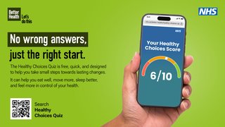The Healthy Choices Quiz offers a simple way to assess your lifestyle across six themes and provides a score out of 10. On completion, it signposts users to the relevant free NHS digital tools for support.