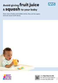 - "Avoid giving fruit juice and squash" which is about preventing tooth decay.
