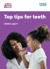 The Top Tips for Teeth leaflet provide top tips for children's oral health, with advice for 0-3 year olds and pregnant women in one leaflet, and 3+ year olds.
