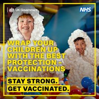 A campaign - produced by the DHSC and the NHS - designed to encourage uptake of routine childhood vaccinations for children aged 0–5, empowering parents and guardians to give their child the best possible protection against vaccine‑preventable diseases. It also encourages families whose children may have missed any vaccinations to contact their GP practice to check which ones they can catch up on and make sure their children have the best possible protection.