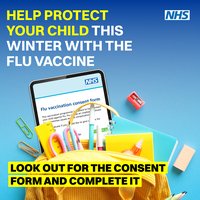 Ready-to-use social media and digital display assets designed to encourage parents of school-aged children to look out for and complete their child's flu vaccine consent form. These professionally designed materials can be used to support the childhood flu vaccination programme. Assets include various formats suitable for different digital platforms and communication channels.