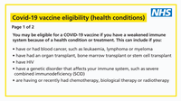 Fact sheet and digital screens explaining COVID-19 vaccine eligibility